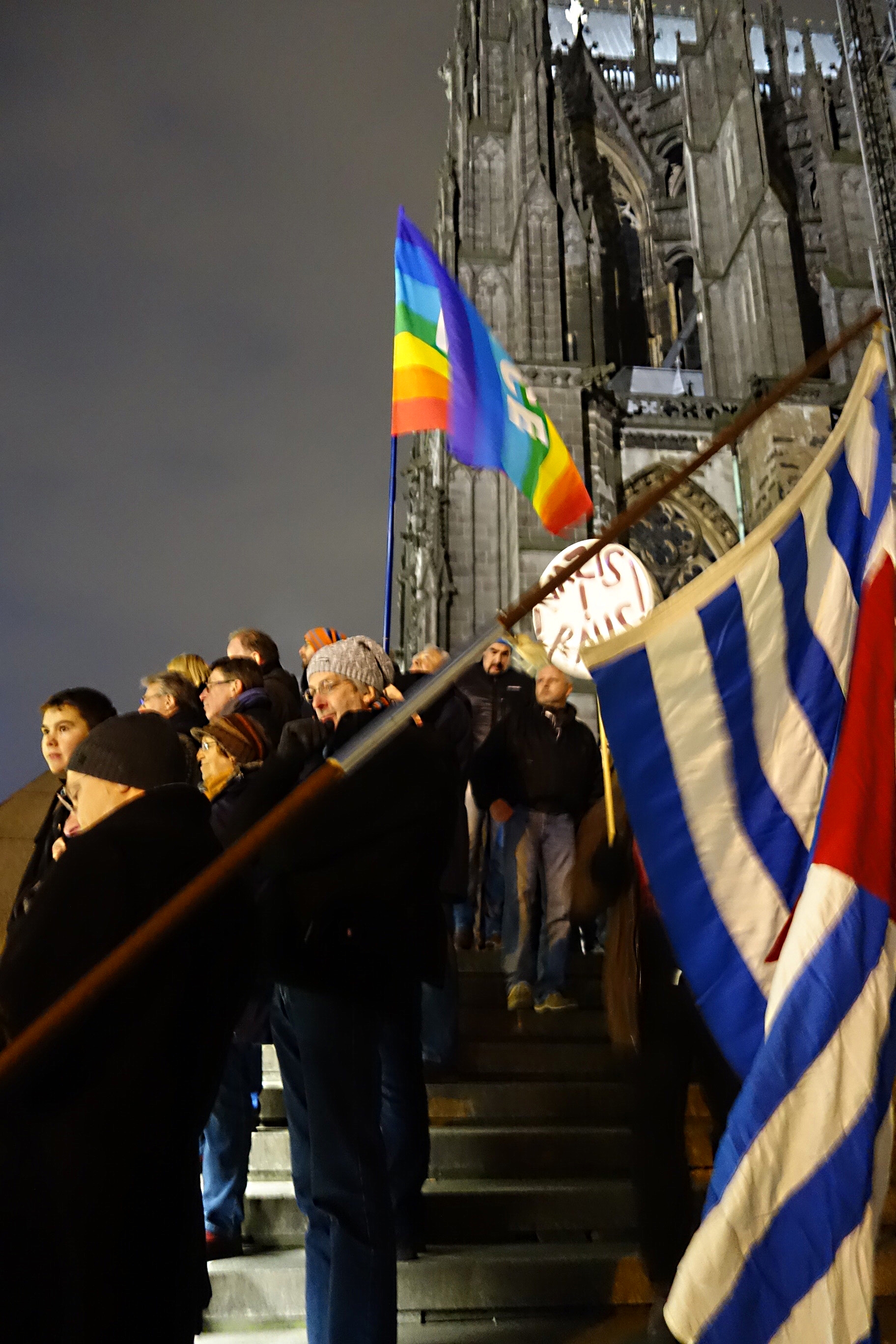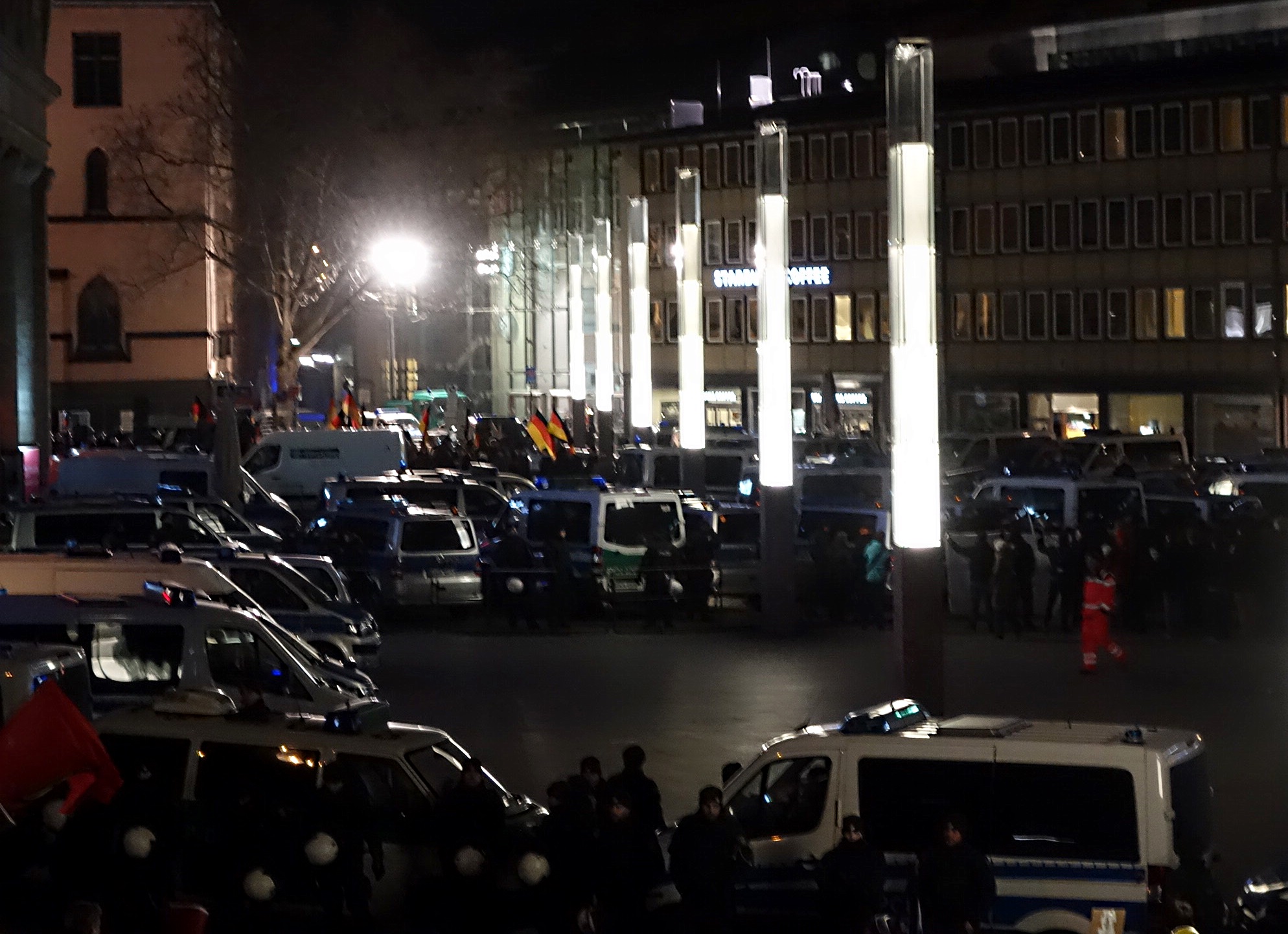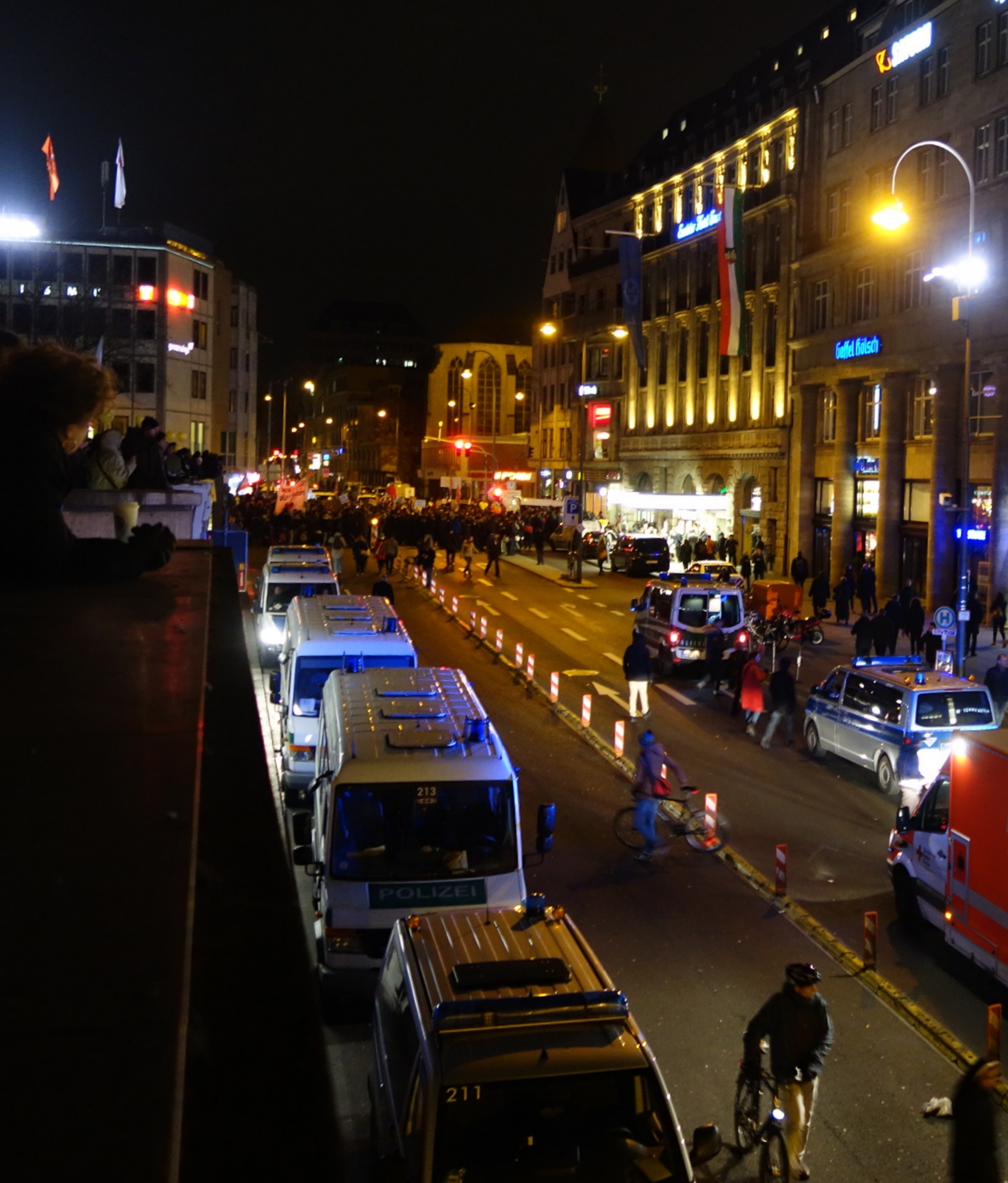 In seiner Verabschiedung nutzte Peter Brings die Gelegenheit, einmal mehr die Haltung der Band gegen Rechte Gewalt und Neonazis deutlich zu machen. Kurz vor der Lesung war sie im Rahmen der friedlichen Gegendemo am Hauptbahnhof gegen rechtsextreme Randalierer aufgetreten. Die Erschütterung über deren massives Auftreten und die Ausschreitungen war dem Frontmann deutlich anzumerken. Sein engagiertes Statement brachte einen zentralen Aspekt im Wirken von Brings auf den Punkt und beendete es die Veranstaltung mit einem eindrücklichen Schlussakkord.